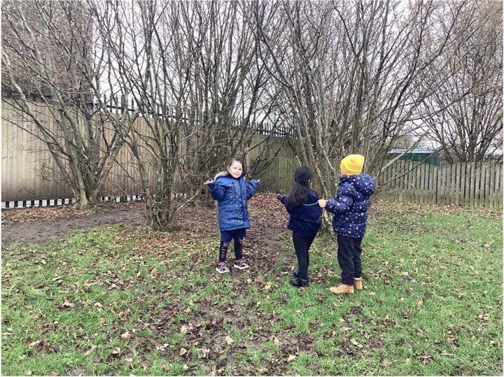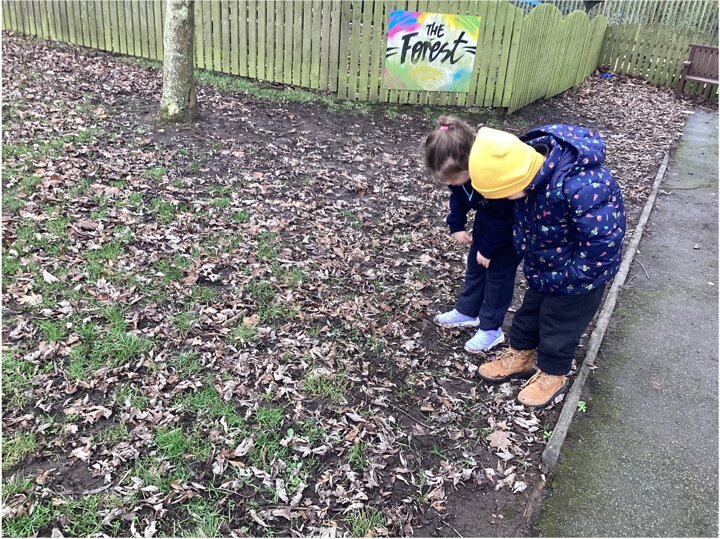 We talked about how some animals hibernate or hide away during the cold months and observed the winter weather—frost, snow, rain, and lots of grey skies! The children loved spotting these changes and learning how winter affects plants, animals, and the world around us.