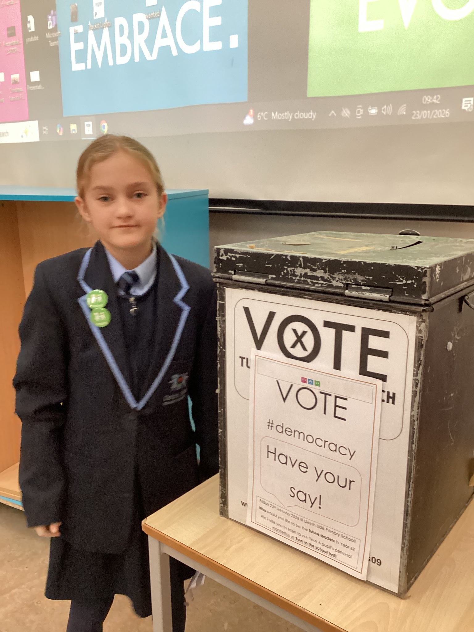 Today was a big day at Delph Side! It was our election day for Pupil Parliament. We started the day off by listening to speeches and manifestos, before we finally made our decisions and voted. We are so pleased we get to vote democratically. Congratulations to our newly elected Parliament. #Makethedifference