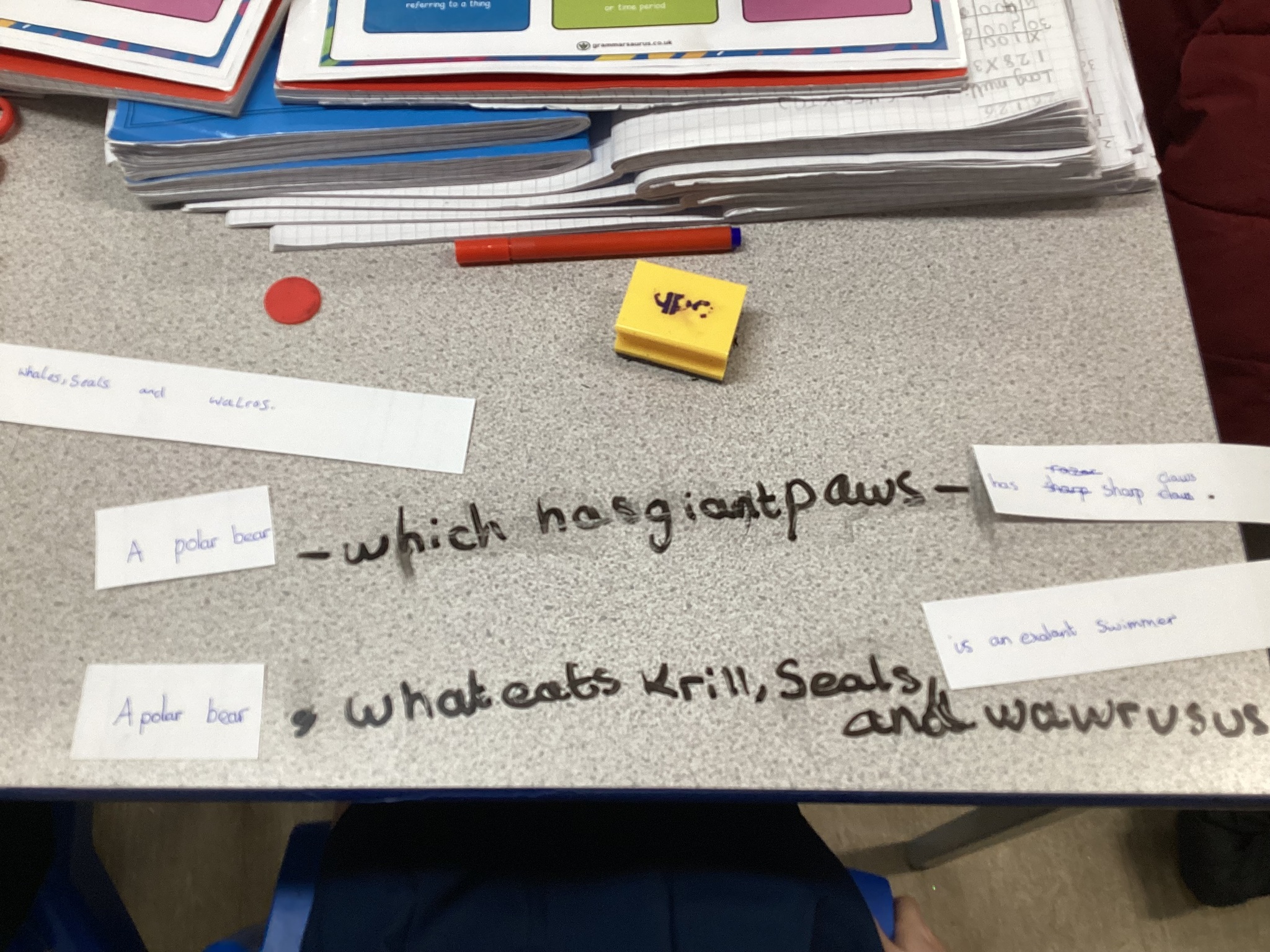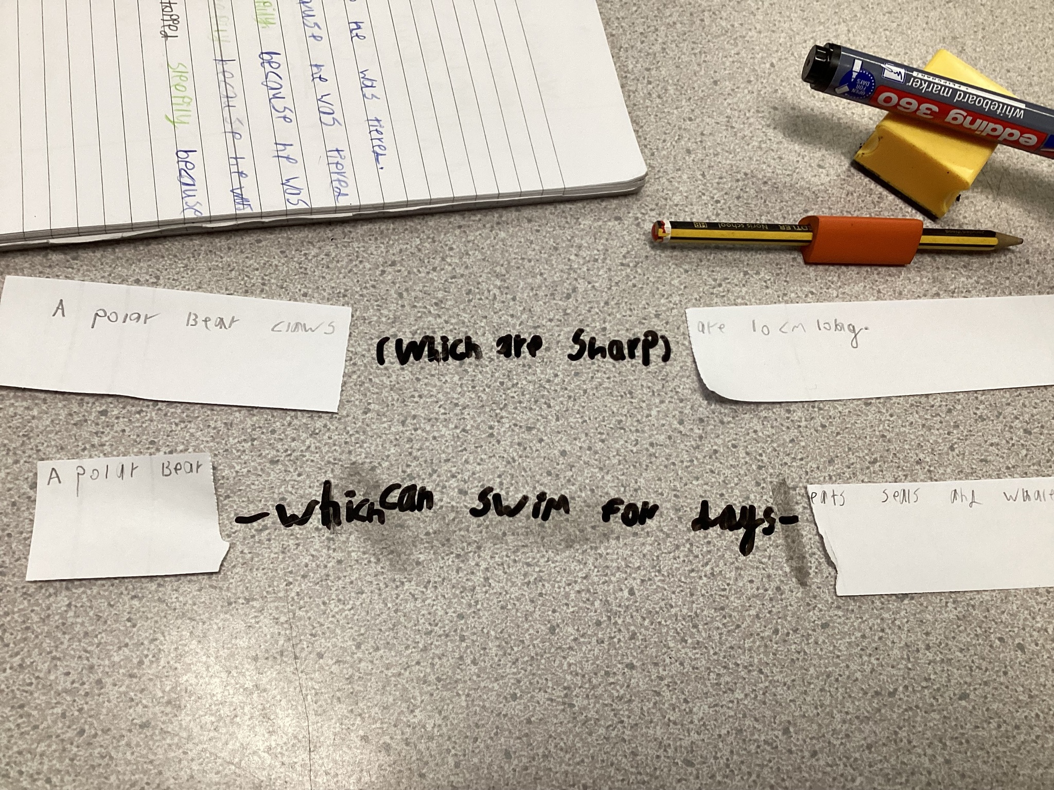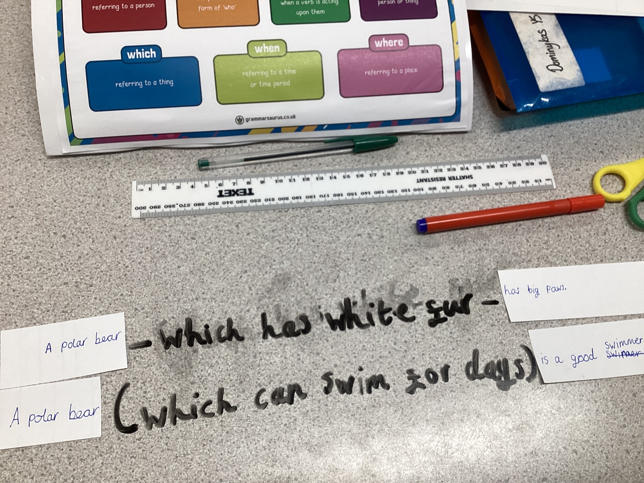 In grammar, we have been exploring how to insert relative clauses into main clauses. Learning all about polar bears and penguins we cut up our facts and added extra information in between. Polar bears are certainly not as cute and cuddly as we first thought!
