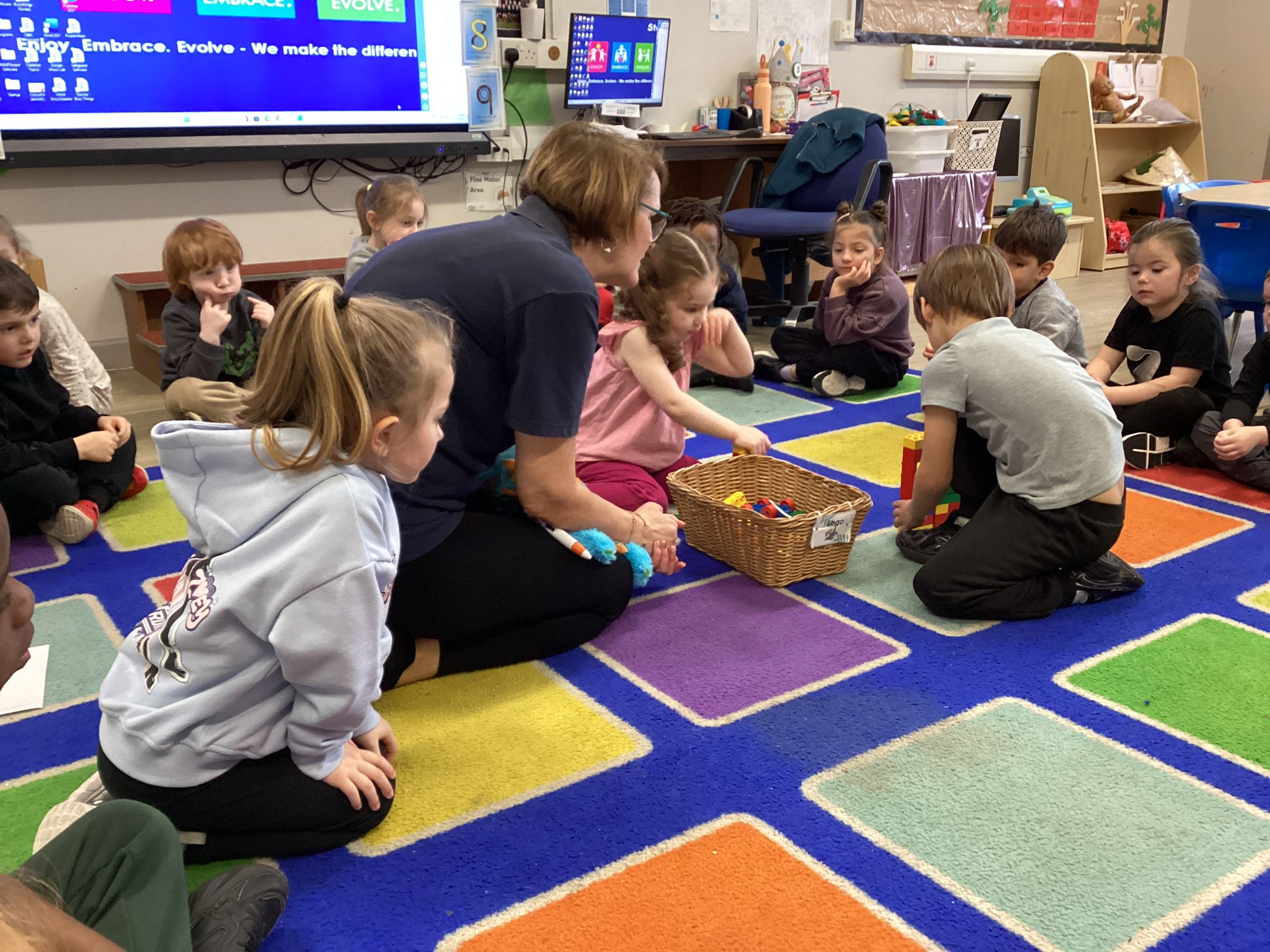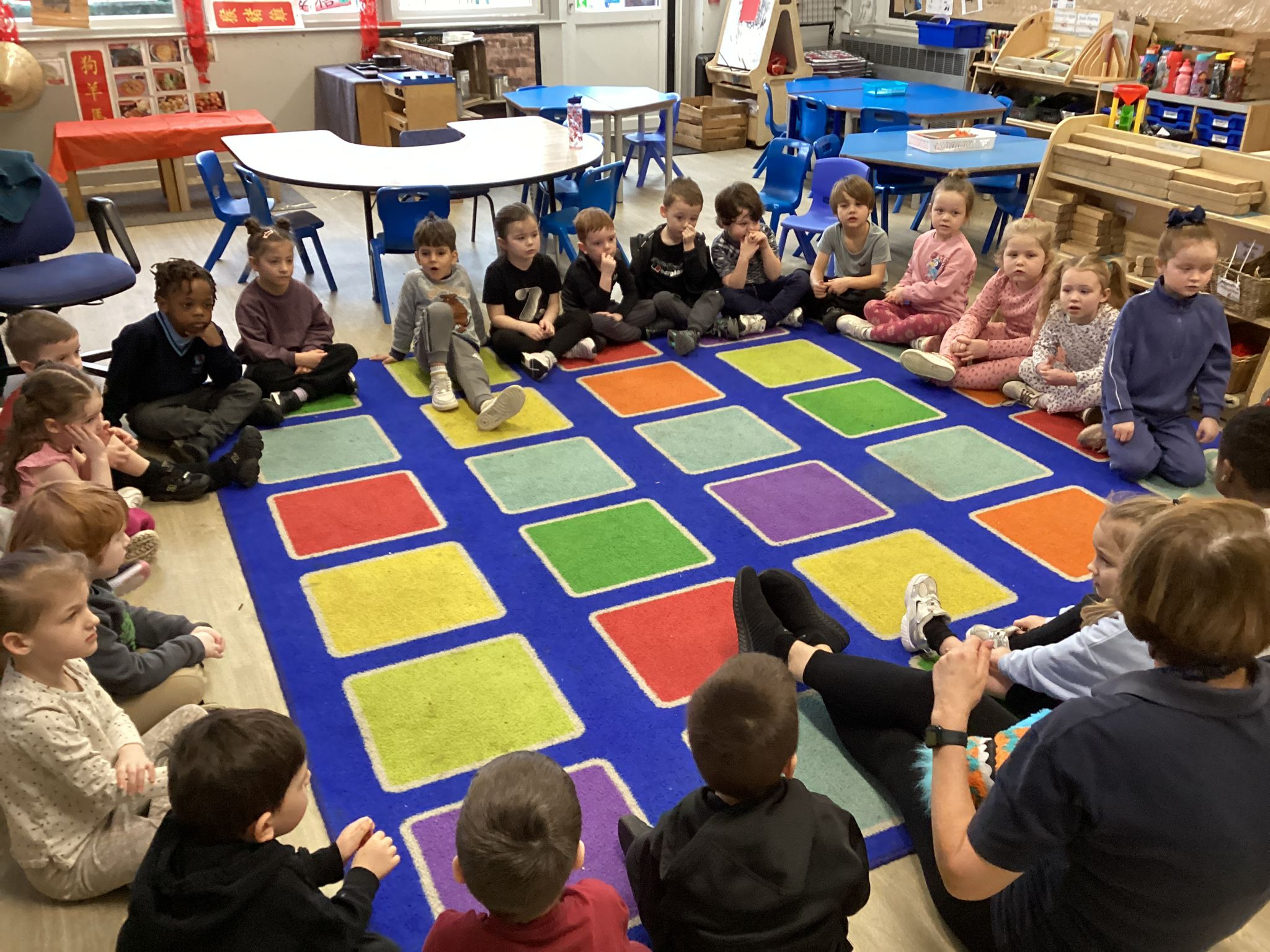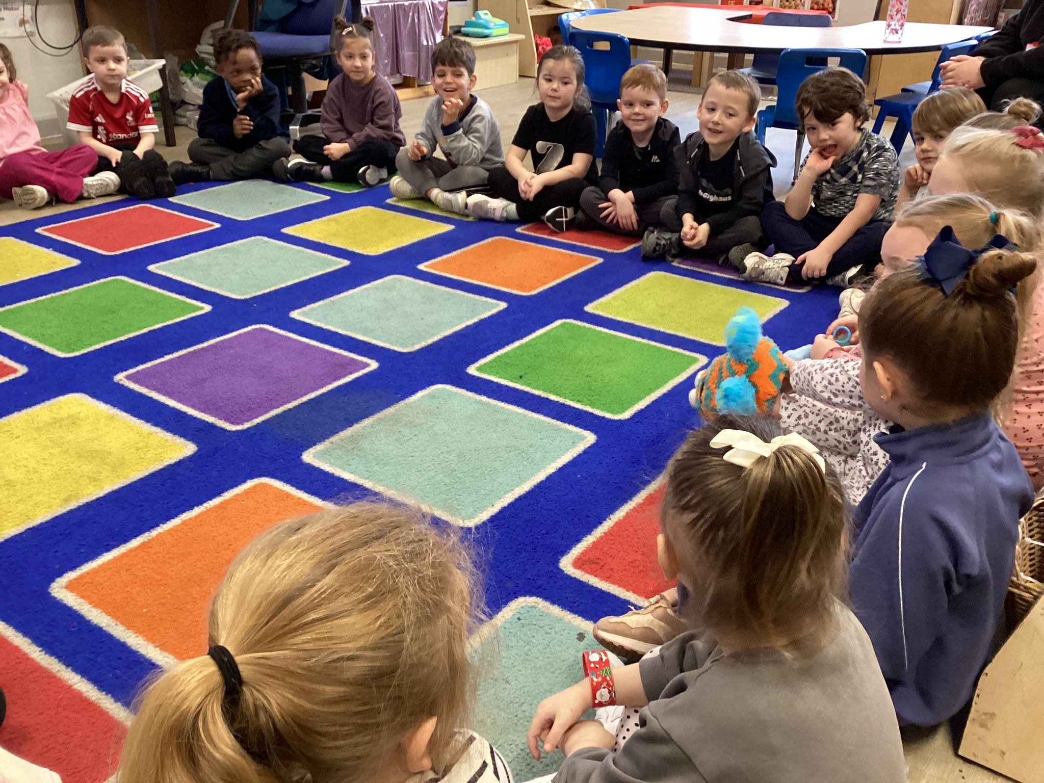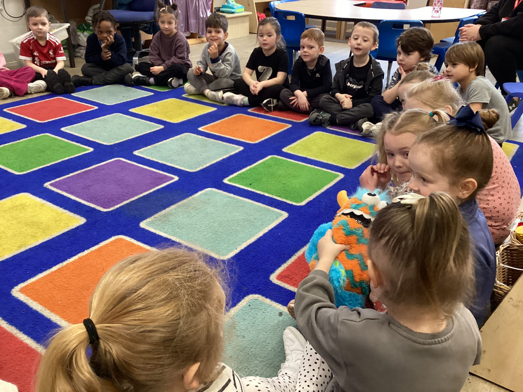 Reception marked Children’s Mental Health Day with a lovely Welcome Circle. We took part in a Welcome Circle, a simple but powerful activity designed to help children notice one another, use each other’s names, and practise inviting friends to play. We sat together in a circle and used a special soft toy as our “talking object” so everyone knew when it was their turn to speak. First, we modelled how to introduce ourselves by saying our name and something we enjoy. Then the children had a turn to share their own names as the toy was passed around the circle. In our second round, children were invited to use friendly words to ask a classmate to join them in an activity—many lovely invitations were shared, and we celebrated these moments of kindness. We finished by highlighting a few examples of thoughtful invites and encouraged everyone to think about who they might like to include in their play today. The children practised listening, taking turns, and showing care for their peers—small steps that help build a strong sense of belonging in our classroom.