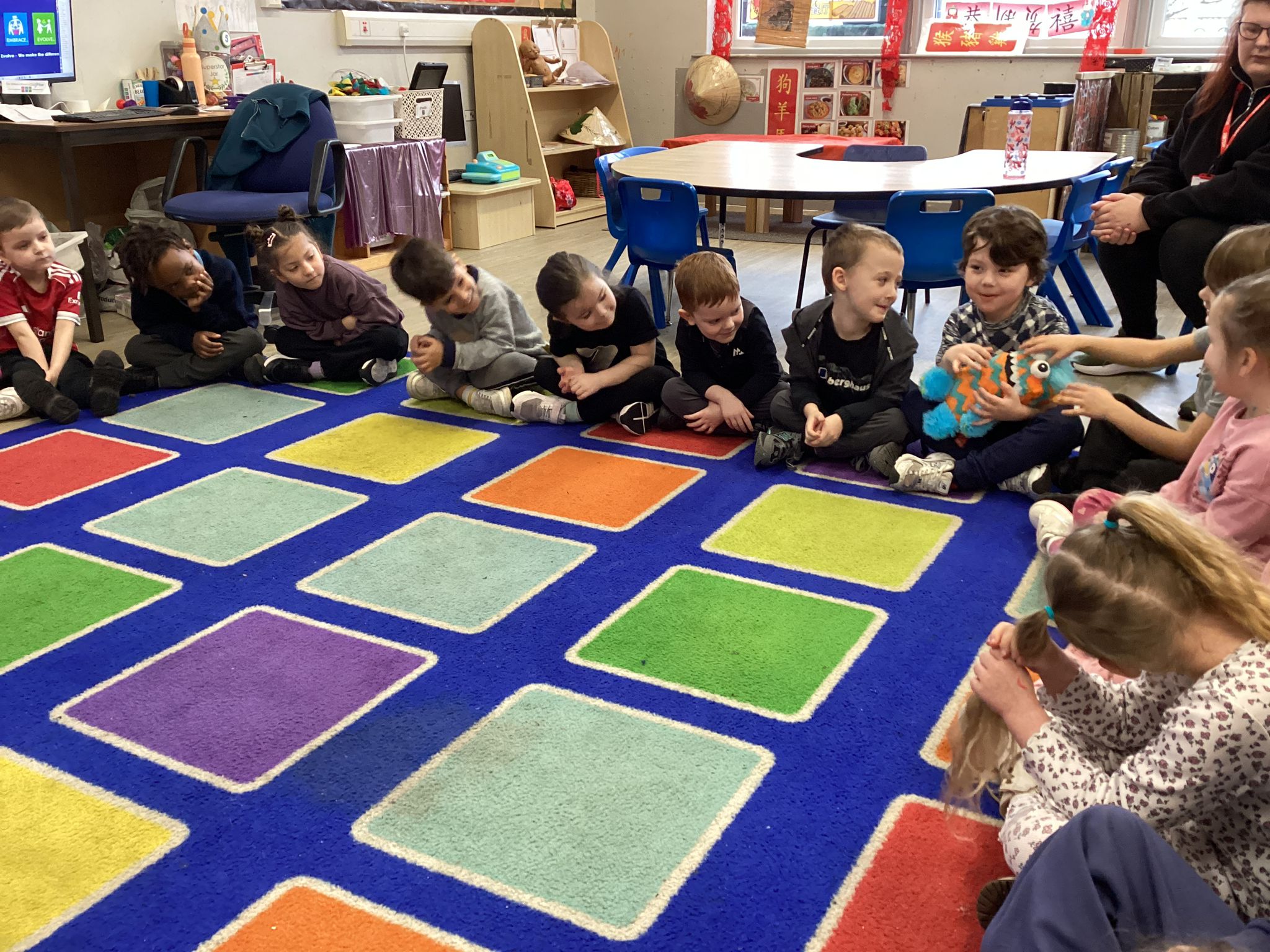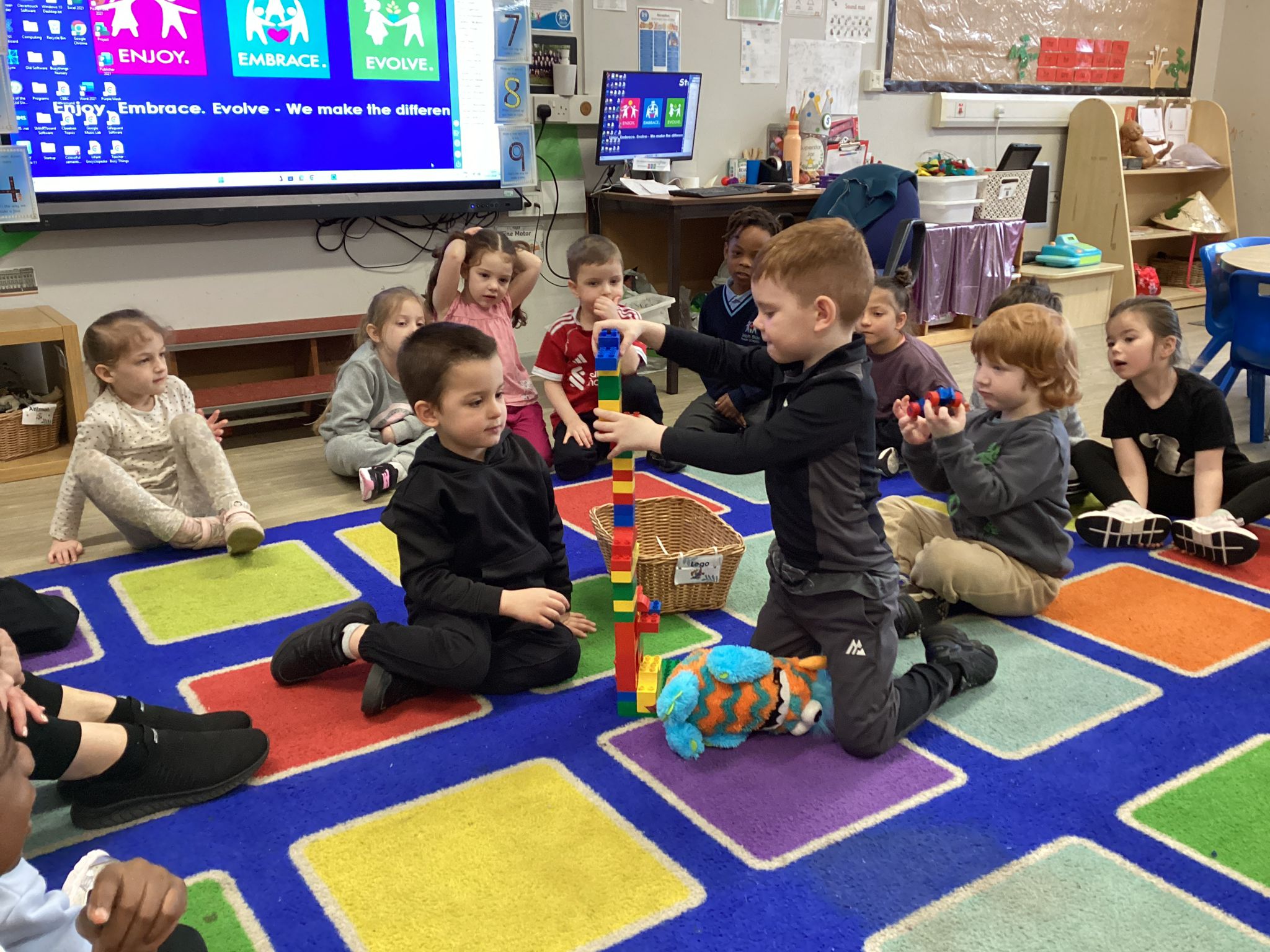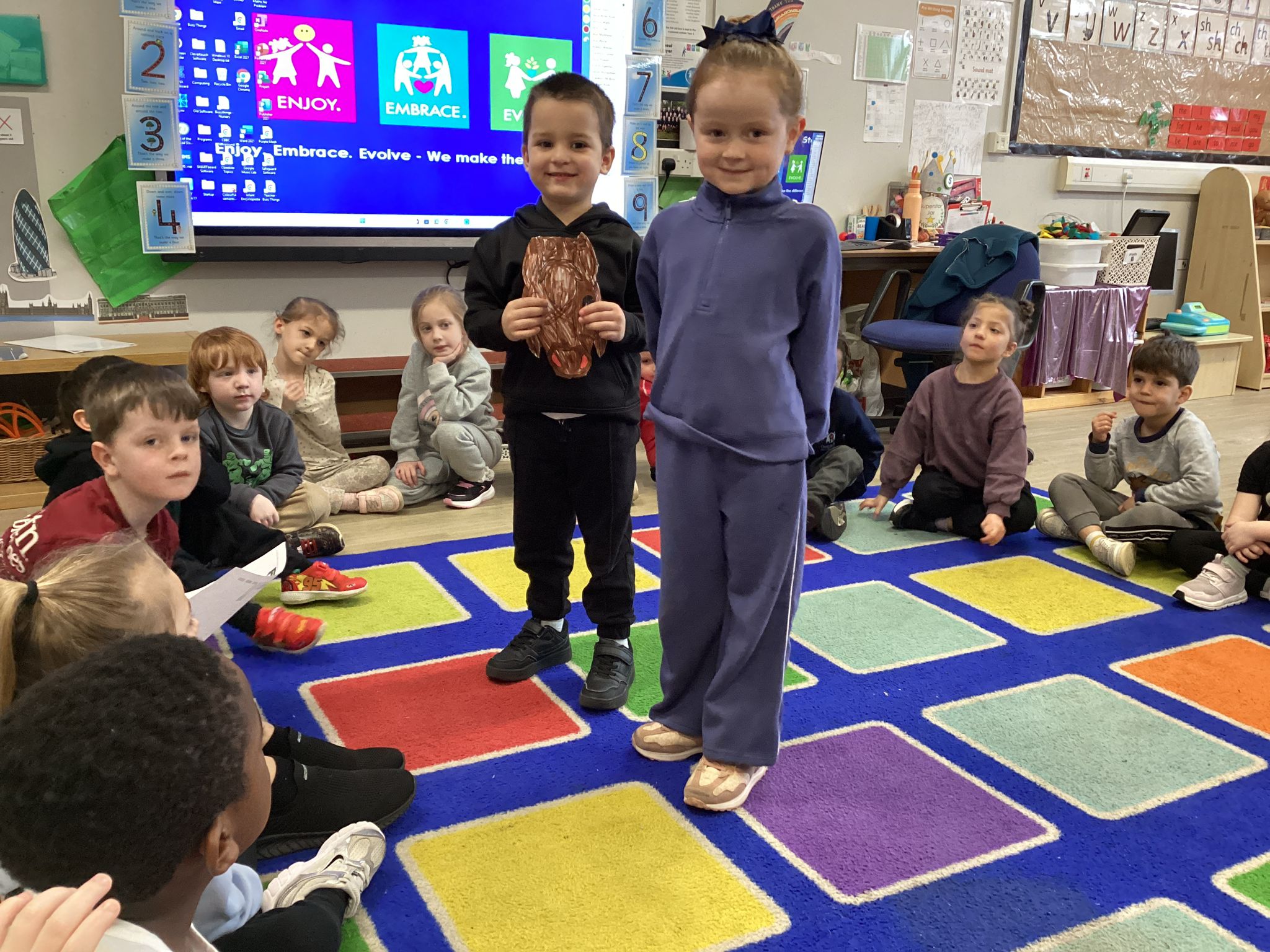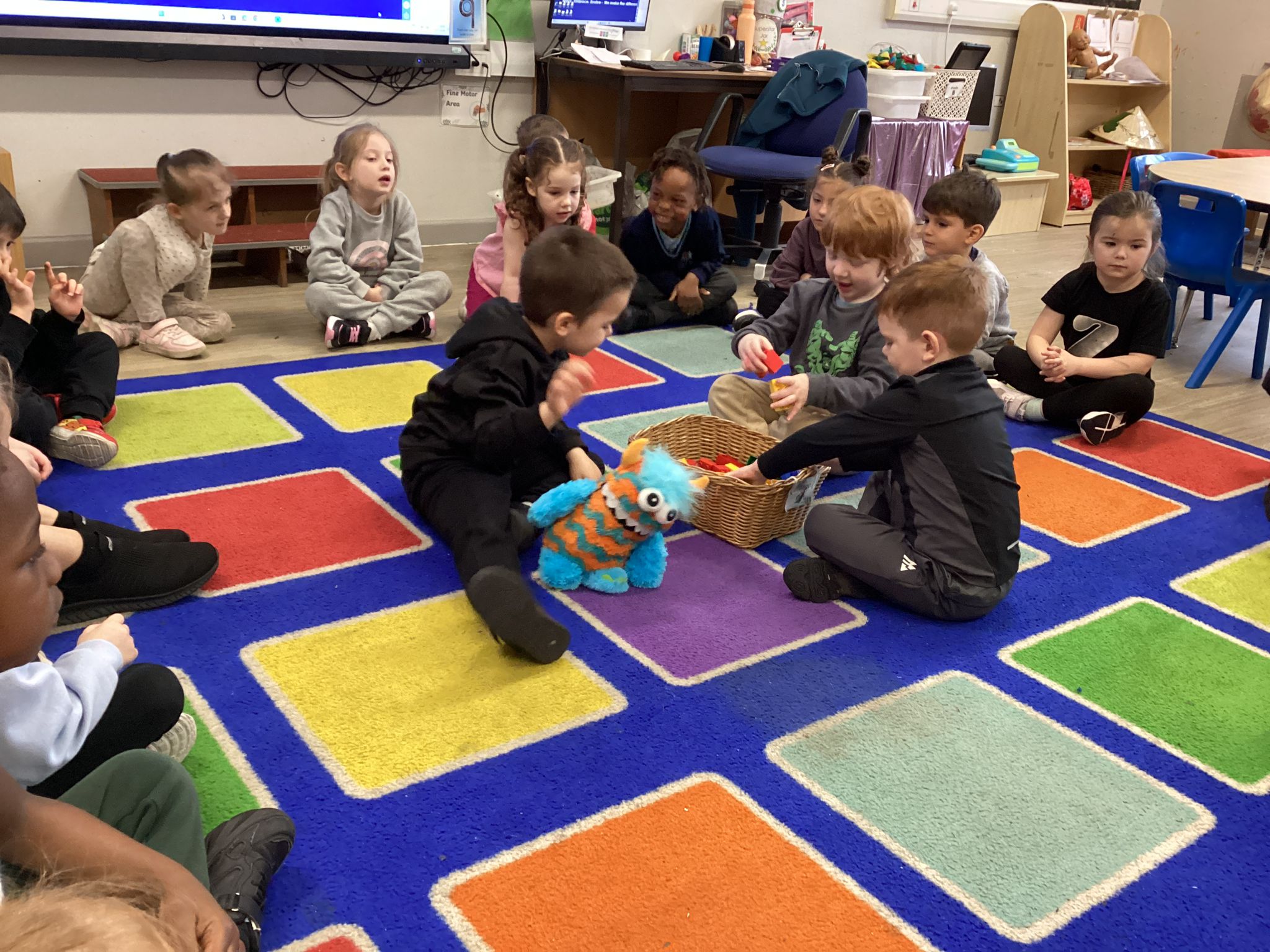 Reception marked Children’s Mental Health Day with a lovely Welcome Circle. We took part in a Welcome Circle, a simple but powerful activity designed to help children notice one another, use each other’s names, and practise inviting friends to play. We sat together in a circle and used a special soft toy as our “talking object” so everyone knew when it was their turn to speak. First, we modelled how to introduce ourselves by saying our name and something we enjoy. Then the children had a turn to share their own names as the toy was passed around the circle. In our second round, children were invited to use friendly words to ask a classmate to join them in an activity—many lovely invitations were shared, and we celebrated these moments of kindness. We finished by highlighting a few examples of thoughtful invites and encouraged everyone to think about who they might like to include in their play today. The children practised listening, taking turns, and showing care for their peers—small steps that help build a strong sense of belonging in our classroom.