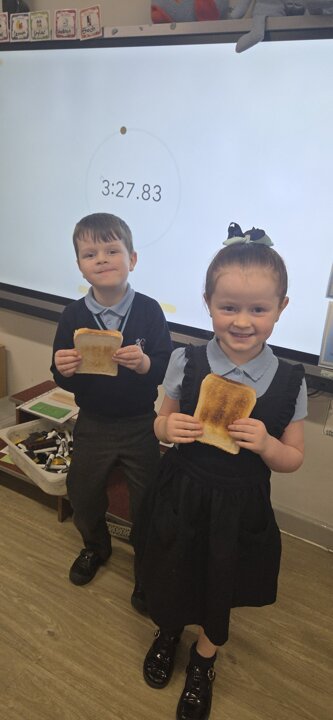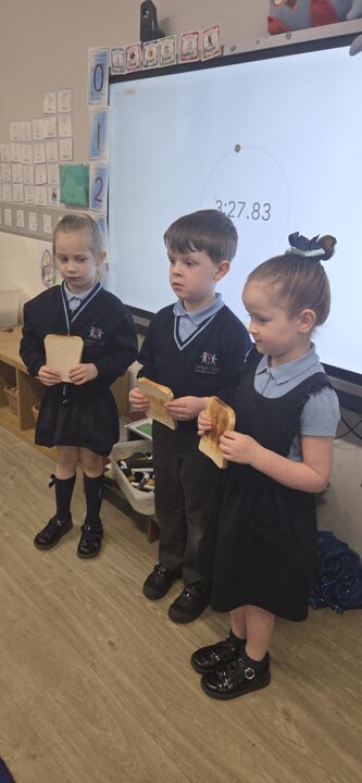 This week in Reception we have been learning all about height. The children have been using the language of short/shortest and tall/tallest, and they have enjoyed comparing their own heights with their friends. We used a class height chart to see the differences between everyone, and the children then worked together to stand in order from the shortest to the tallest. Reception have also been exploring the concept of time. First, they challenged themselves to see how many jumps they could complete in 30 seconds. Then they carried out a fun investigation using a toaster: they toasted one piece of bread for 1 minute, another for 2 minutes and a third for 3 minutes. Afterwards, they compared the slices to see how the different toasting times had changed them.