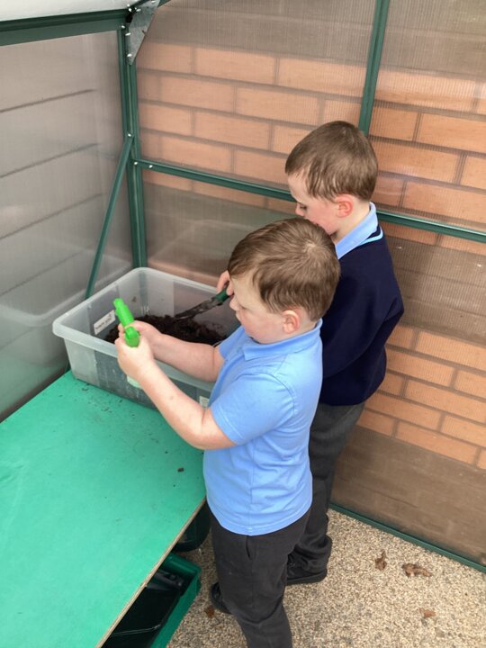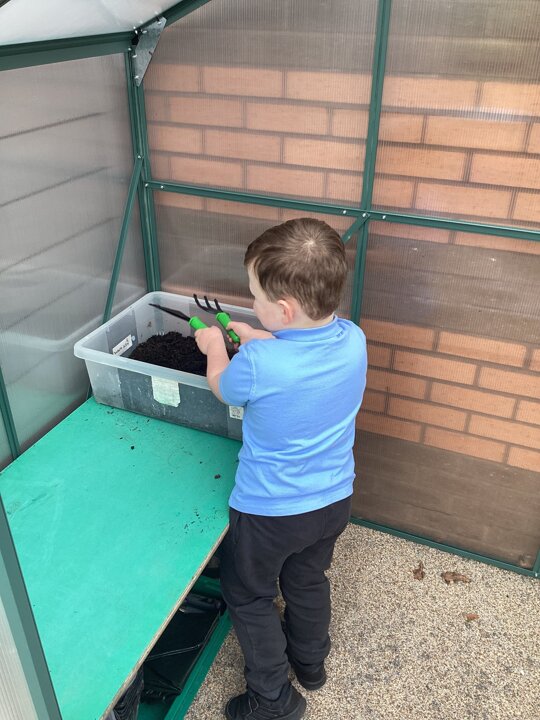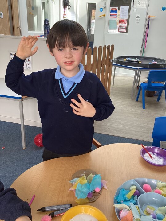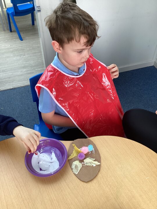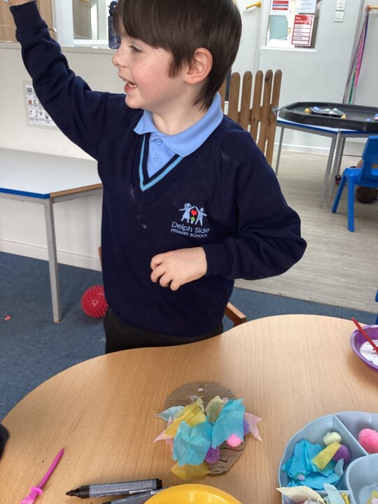 Spring has arrived in The Hangout! We’ve been painting bright daffodil pictures and getting ready for our greenhouse by planting and organising. We also shared our decorated eggs from home and created colourful Easter egg collages. A fun and creative start to the season!
